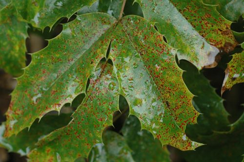 Щоб вилікувати магонію від іржі, її слід обприскати такими фунгіцидами, як: Абига-Пік, Оксихом, Цинеб, Байлетон і т. д.
