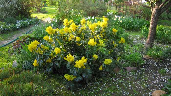 Рослина магонія (Mahonia) представлено чагарниками і деревами і відноситься до сімейства барбарисові. Магонію в диких умовах можна зустріти в східних і центральних областях Азії, а також у Північній Америці. Цей рід був названий на честь американського садівника з Ірландії Бернарда Мак-Магона, він займався тим, що на сході США акклиматизировал рослини, які привіз із західної частини країни. Він прославився ще й тим, що першим створив американський садовий календар. Цей рід об'єднує приблизно 50 видів. Магонія падуболиста являє собою типовий вид даного роду, там, звідки вона родом, її ще називають «орегонским виноградом». Таке тіньолюбні рослина володіє високою стійкістю до морозу і посухи, а також невимогливістю до грунту.