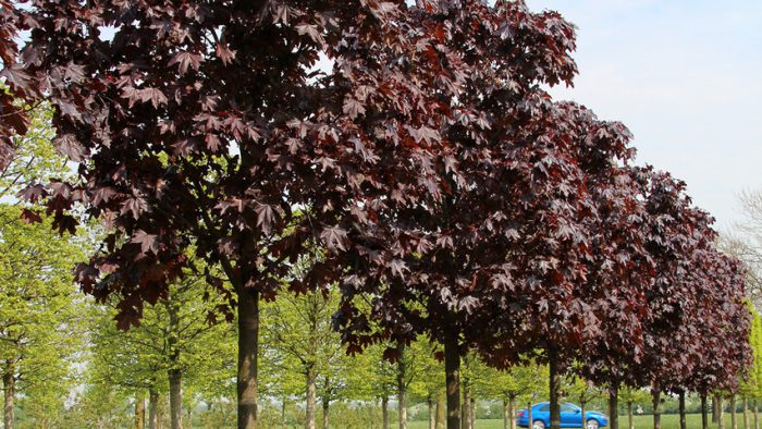 У садівників таких країн як Німеччина, Англія і Голландія досить великою популярністю користуються великі дерева з листям, що володіє строкатим або насиченим забарвленням. А так як у клена гостролистого є велика кількість сортів, то садівникам є з чого вибрати. Приміром, якщо схил гори або яру прикрасити такими дерев з листям жовтого, пурпурного або строкатого забарвлення, то це буде виглядати, як декорація до казки.