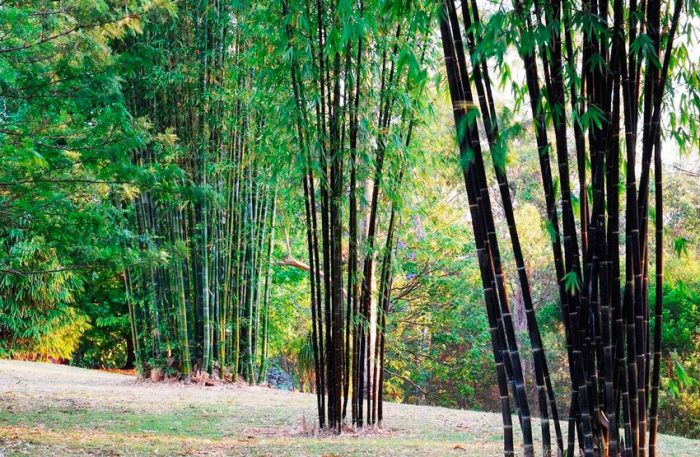 У висоту може досягати не більше 7 метрів. Після того, як їй виповниться 2 роки, його стебла забарвлюються в практично чорний колір. Невеликі листові пластини мають темно-зеленим забарвленням. Найбільшою популярністю цей вид користується на своїй батьківщині, а саме, в Китаї та Японії. Дуже часто культивують такий сорт як Боряна (висота близько 450 см, від сонячного світла на поверхні стебел з'являються цятки) та Хемонис (забарвлення стебел зелений, а їх висота близько 900 см).