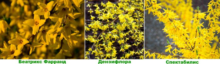 Види і сорти форзиції з фото і назвами