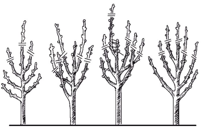 Саджанцям, які використовуються для посадки, повинно виповнитися 2 роки. У висоту вони повинні досягати 150 сантиметрів, а їх ствол повинен мати двосантиметровий діаметр, при цьому на саджанці повинно бути від 3 до 5 скелетних гілок. Глибина і діаметр посадкової ямки повинен бути близько 0,8 м. Коли ямка буде готова, в неї слід вбити кілок, який буде служити опорою для саджанця. При цьому розмістити кількість рекомендується з тієї сторони, з якої вітер дме найчастіше. При викопуванні ямки верхній шар грунту, насичена поживними речовинами, треба з'єднати з мінеральними добривами і перегноєм, потім отриману суміш потрібно горбком всипати в центр посадкової ями. На це горбок і треба буде встановити саджанець, у якого потім акуратно розправляються корінці. Потім яму треба засипати все тієї ж почвосмесью, при цьому коренева шийка рослини повинна підніматися над поверхнею грунту на 3-4 сантиметри. Полийте посаджену рослину, використовуючи для цього 30 літрів води. Після того як рідина повністю вбереться, коренева шийка повинна бути на одному рівні з поверхнею грунту. Потім треба буде вкоротити стебла рослини на 1/3 і підв'язати до кілка. Пристовбурне коло треба засипати шаром мульчі (перегній або сухий грунт з нижнього шару землі, який не так родючий).
