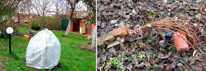 В тих же місцях, де зими морозні або малосніжні дейції потрібне обов'язкове укриття на зимівлю. При цьому тільки сніговий покрив не зможе захистити рослини від морозів. Досвідчені садівники рекомендують використовувати для підготовки такого чагарника до зими повітряно-сухе укриття. Для цього кущі потрібно пригнути до поверхні грунту і зафіксувати. Після цього необхідно над ним зробити каркас. Поверхню каркаса потрібно присипати шаром сухих листочків або закидати його ялиновим лапником. Зверху все накривається лутрасілом, а поверх нього натягується плівка з поліетилену. Це необхідно для того, щоб вода не змогла проникнути всередину. Такий спосіб укриття ідеально підходить для молоденьких чагарників, так як їх гілки дуже легко пригинаються до поверхні грунту. Якщо чагарник дорослий, то його слід туго зв'язати за допомогою шпагату або мотузки. Поверх пов'язані кущі потрібно обов'язково обернути укрывочным матеріалом, який повинен пропускати повітря (мішковина, спанбонд або лутрасил). Це допоможе захистити рослину від холодів, при цьому нирки пріти не будуть.