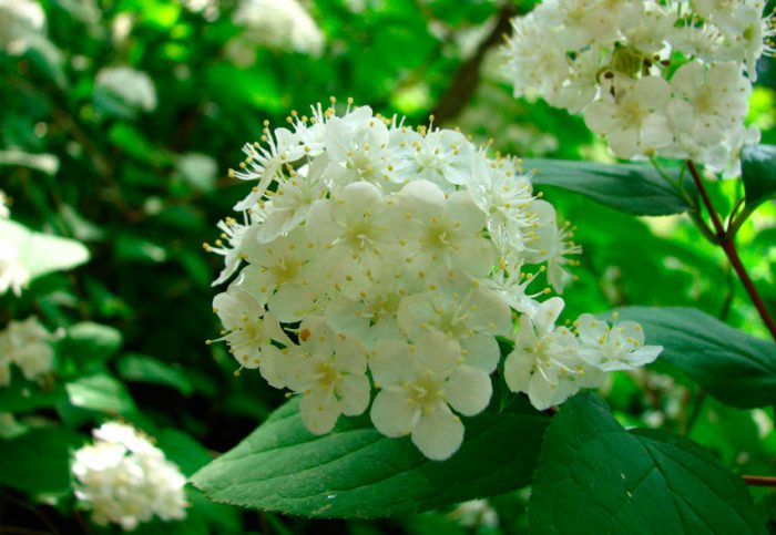 Ця рослина можна в природних умовах зустріти в Китаї, Північній Кореї та на Далекому Сході. На території Росії це рослина в декількох заповідниках є охоронюваним. Воно воліє рости в хвойно-широколистяних і дубових лісах, при цьому його можна зустріти на висоті близько 1,4 тисячі метрів над рівнем моря. Така рослина являє собою листопадний чагарник, форма куща у якого розлога. У висоту вона може досягати 200 сантиметрів. Гілки покриті коричневою корою, яка з часом змінює своє забарвлення на червоний. Довжина супротивно розташованих листових пластин близько 6 сантиметрів, вони мають еліптичну форму. Біля основи вони клиновидні, а до вершини загострюються, тонкопільчатие, на їх обох сторонах є опушення. У весняний і літній час вони насичено-зеленого або зелено-попелястого окрасу, і буро-жовті або охряні в осінні місяці. Багатоквіткові суцвіття щитковидной форми в діаметрі досягають 7 сантиметрів. До їх складу входять білі квіточки, не мають запаху. Цвіте рослина протягом 20 діб, при цьому початок цвітіння — в останні дні червня. Плоди досить непоказні і пофарбовані в брудно-жовтий колір, вони виглядають як коробочки практично кулястої форми. Даний вид відрізняється волого - і светолюбивостью, а також стійкість до посухи, газів і диму. Швидкоросла рослина, цвісти починає порівняно рано.