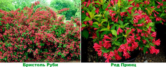 - Брістоль Рубі. З'явився сорт у 1941 р. у США. Кущ може досягати у висоту 250-300 сантиметрів, при цьому діаметр крони дорівнює 350 сантиметрам. Листочки мають яскраво-зелене забарвлення. Рожеві квітки мають рубіново-червоні краю, іноді їх серединка забарвлена в оранжевий колір. Це швидкоростуча рослина починає цвісти в останні дні червня.