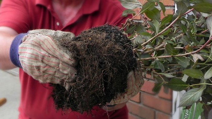 Якщо саджанець вейгели дрібного сорту (не вище 100 сантиметрів), то між кущиками слід залишати відстань не менше 80 сантиметрів, проміжки між кущами високих сортів (висота до 250 сантиметрів) повинні бути від 150 до 200 сантиметрів. Під час посадки не забудьте розправити коріння саджанця, грунт потрібно буде поступово всипати в ямку та утрамбовувати, для того щоб виключити можливість утворення пустот. Заглибити кореневу шийку можна всього на 10-20 мм, але бажано, щоб коли грунт осяде після поливу, вона знаходилася на одному рівні з землею. Висаджену рослину треба добре полити, а поверхня ґрунту присипати шаром мульчі.