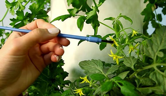 Томати є самоопыляемыми, тобто їм для запилення не потрібні комахи. Однак для того щоб зібрати багатий урожай, рослинам потрібна допомога. Для того щоб поліпшити запилення можна:
