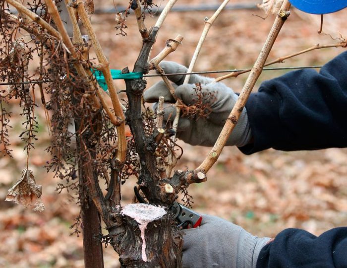 Обрізані кущі обов'язково обробляють в профілактичних цілях від різних захворювань. Як правило, для цього використовують розчин залізного або мідного купоросу (3-5%). Для обробки винограду вибирають безвітряний погожий день, при цьому має бути не холодніше 5 градусів, інакше належного ефекту від обприскування кущів отрутохімікатами не буде.