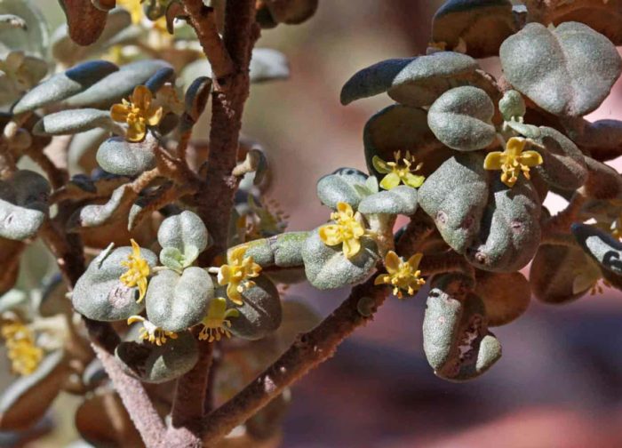 Вид представлений розкидистим сильнорослою чагарником, пагони у якого щільно переплетені один з одним. Гілки густо облиствены округлої щільною листям темно-зеленого забарвлення. Поверхня листя усипана безліччю бородавчастих наростів. Кущ дуже пишно цвіте і дає багатий урожай. Під вагою ягід стебла схиляються до землі. У дикій природі цей вид зустрічається практично тільки на плато Колорадо.