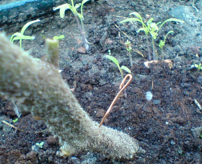 Даний метод з використанням мідного дроту був запатентований німецькими вченими. Він полягає в тому, що перед висадкою у відкритий грунт кореневу систему сіянців обмотують тоненькою мідним дротом. Існує й інший метод застосування мідної дроту для профілактики грибкових захворювань. У цьому випадку стебло перцю, баклажана або помідора протикають мідним дротом (довжина відрізка від 30 до 40 мм). Далі відрізок дроту пропихають крізь стебло, після чого її кінчики опускають вниз і притискають до рослині. В цьому випадку культура постійно отримує мікродози міді, що сприяє стимуляції її дихання, стабілізації вироблення хлорофілу і посилення окисних процесів. Завдяки цьому стійкість рослин до грибкових хвороб збільшується. Пам'ятайте про те, що прожарювати стебло дротом можна тільки тоді, коли він зміцніє. Не забудьте підготувати мідний дріт, для цього її прожарюють на вогні і зачищають за допомогою наждачного паперу. Далі її розрізають на невеликі шматки і вводять в стебло куща на висоті близько 10 сантиметрів від поверхні грунту. Кінчики дроту можна обертати навколо стебла.