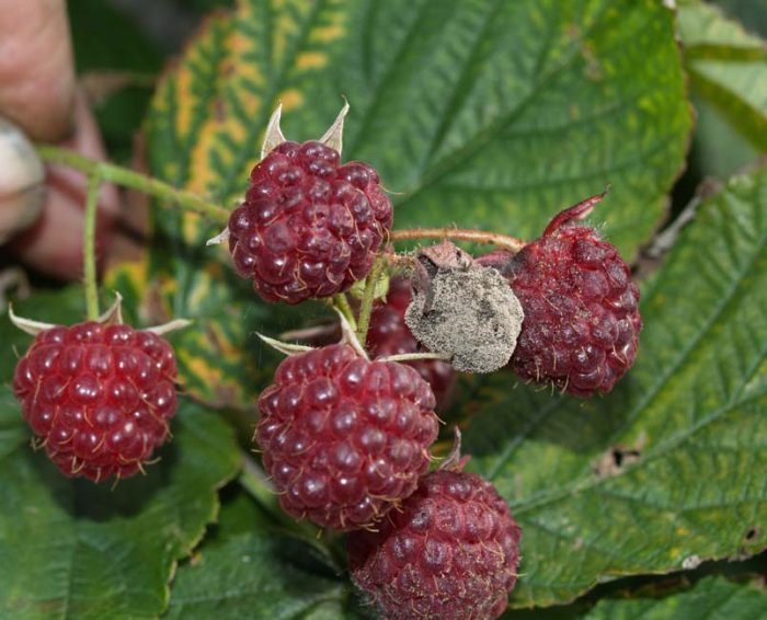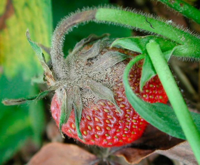 Ураження сірою гниллю (Botrytis cinerea) схильні як дикорослі, так і культурні рослини. Вона проявляється в період транспортування і зберігання плодів. Збудником цієї хвороби є грибок ботритис, який вважається рановим паразитом. Джерела інфекції ― це конідії і склероції, які знаходяться в рослинних рештках і землі. Найбільш часто захворювання починає розвиватися в захищеному грунті за умов наявності краплинної вологи на відмерлих частинах рослини. Першими уражаються пагони, квітки, листя і плоди тих кущів, які сильно ослаблені.