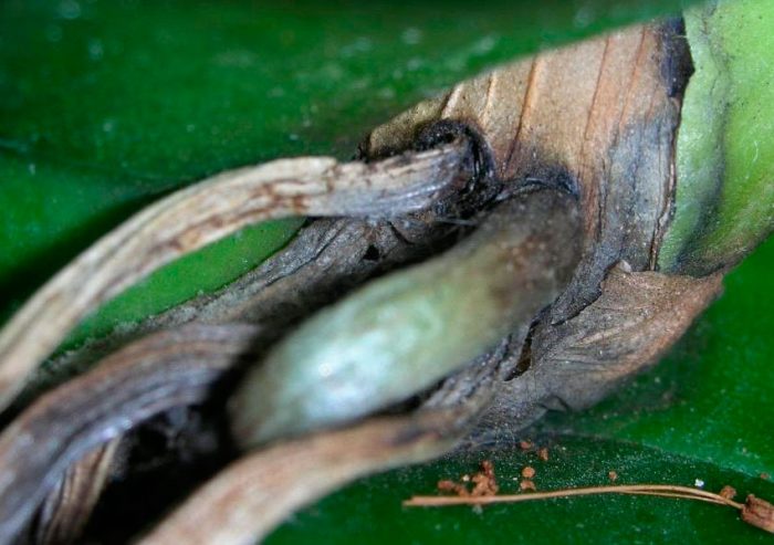 - спостерігається побуріння або потемніння квіток, які з часом засихають;