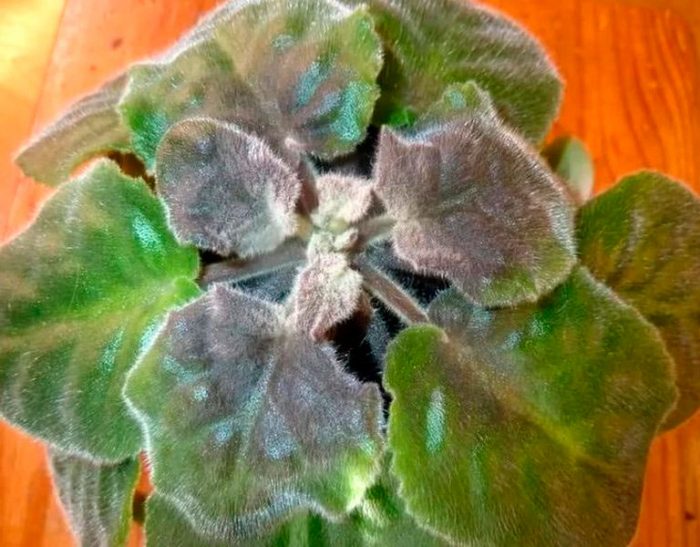 Узамбарські фіалки дуже милі і ефектні, тому не дивно, що часто недосвідчені квітникарі доглядають за ними надмірно активно, вони їх занадто часто поливають і зволожують листя. Такий догляд може стати причиною розвитку ботритісу, з-за якого з'являються цятки коричневого кольору, а також пухнастий сірий наліт. При виявленні перших ознак захворювання кущики необхідно обприскати розчином фунгіцидної препарату, наприклад, можна використовувати Тельдор або Сумилекс. А також обов'язково перестаньте зволожувати фіалку з обприскувача, і скоротіть рясність і частоту поливів. Якщо ж квітка вже не врятувати, тоді відшукайте на ньому здорову листову пластину і спробуйте посадити її.