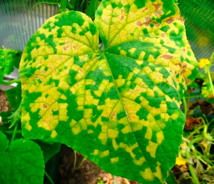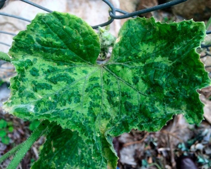 Огірки найбільш часто хворіють звичайною мозаїкою, причому хвороба проявляється наступним чином: