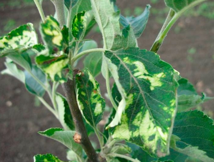 Найбільш часто плодові дерева хворіють підшкірної плямистої мозаїкою, її основні симптоми: