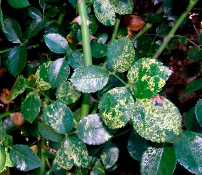 Мозаїка може вразити троянди, при цьому хворе рослина можна впізнати за такими симптомами:
