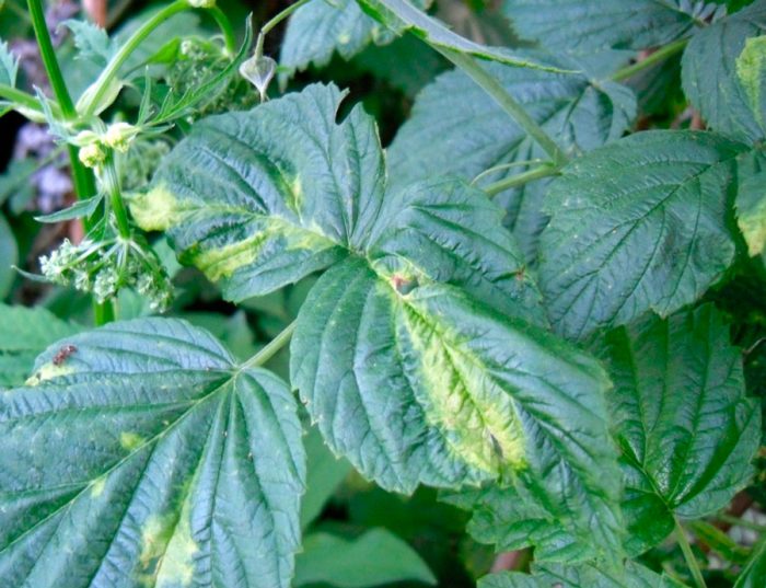 Жилковая мозаїка здатна вразити різні ягідні культури, наприклад: смородину, виноград, малина, аґрус та ін., Основні симптоми даного захворювання: