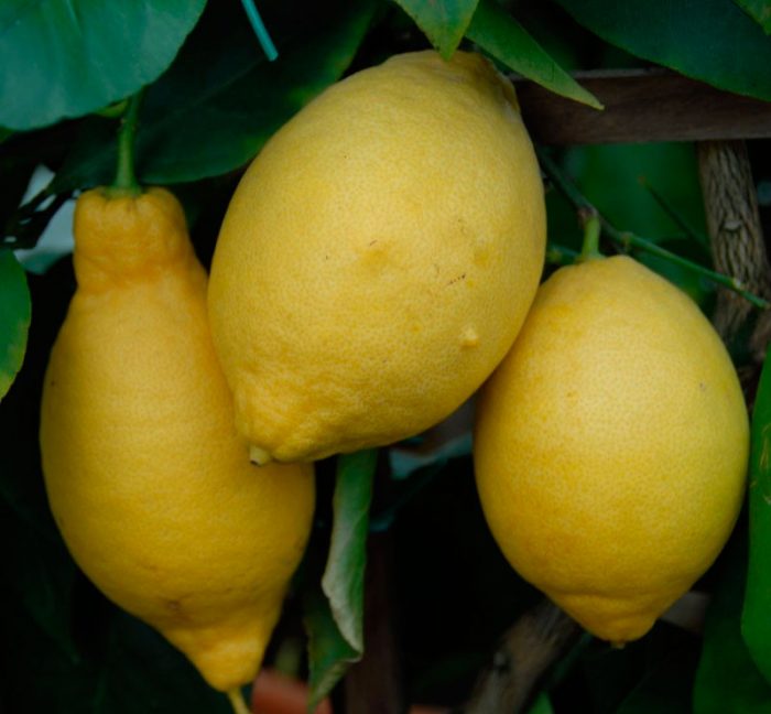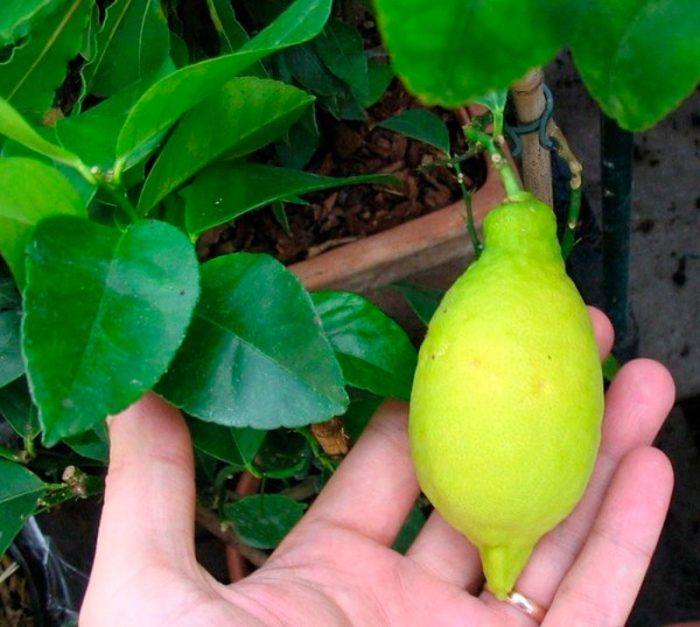 Протягом 1 року на одному дорослому деревце може сформуватися від двадцяти до сорока плодів, які набагато смачніше і якісніше тих лимонів, що виростають на деревах, що ростуть у відкритому грунті. Найчастіше в плодах повністю відсутні насіння або їх зовсім небагато. Однак трапляються і такі плоди, в яких знаходиться від одного до двох десятків кісточок. Лимони зверху покриті гладкою глянцевою або трохи шорсткою горбистою шкіркою, товщина якої приблизно 0,5 см. При бажанні м'якоть плоду можна вживати в їжу разом з шкіркою. В поперечнику лимони досягають 50-70 мм, а в діну ― близько 100 мм, їх середня маса ― від 120 до 150 грам. Однак зустрічаються і такі плоди, які важать близько підлозі кілограма.