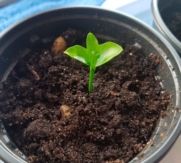 Для поливу сіянців лимона, що з'явилися із насіння, використовують воду, температура якої повинна бути близька до кімнатної. Не забувайте регулярно розпушувати поверхню субстрату в горщиках, причому робити це потрібно дуже акуратно. Після того як у сіянців сформується по 2 справжні листові пластини, вибирають найбільш розвинені і міцні рослинки, і висаджують їх в індивідуальні горщики, в діаметрі досягають 10 сантиметрів. Не забудьте накрити зверху банкою зі скла для підтримання необхідного для кращого вкорінення мікроклімату. Сіянцям влаштовують щоденні провітрювання, для цього 1 раз на добу на нетривалий час з них слід прибирати укриття. Наступну пересадку в більш великі ємності проводять тільки після того, як висота сіянців буде дорівнює 15-20 сантиметрів. Пересаджувати кущики слід дуже акуратно, намагаючись зберегти ком землі цілим. Для цього відмінно підходить спосіб перевалки.