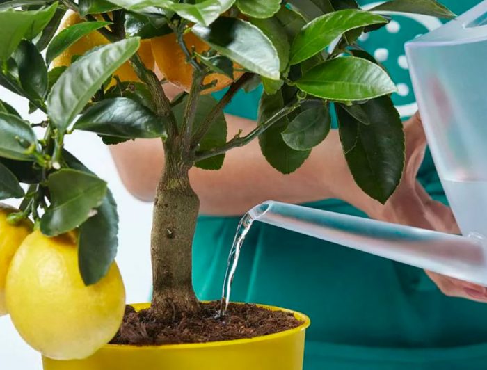 - Добриво. Підгодовують таке дерево комплексним мінеральним добривом, при цьому вносити його в субстрат треба протягом усього вегетаційного періоду. Дорослі кущі підгодовують 1 раз в 20-30 днів, а молоді ― 1 раз у 6 тижнів. З другої половини осіннього періоду потрібно поступове скорочення частоти підживлень: якщо лимон знаходиться в прохолодному приміщенні в стані спокою, тоді його не підгодовують зовсім, а якщо він стоїть в теплому приміщенні ― добрива вносять в ґрунт періодично 1 раз у 6 тижнів. Рослина підгодовують живильним розчином лише після попереднього поливу.