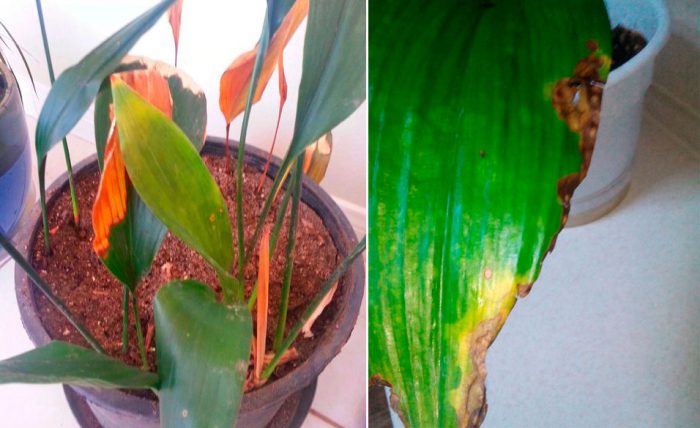 Якщо за аспидистрой неправильно доглядати або не забезпечити їй належних умов для зростання, то це може стати причиною появи різних проблем. Наприклад: