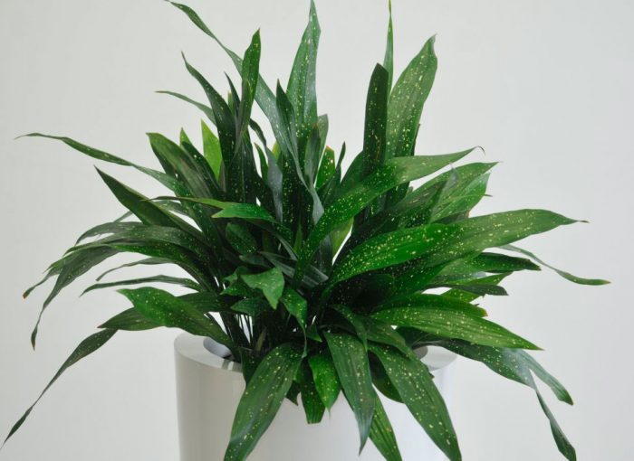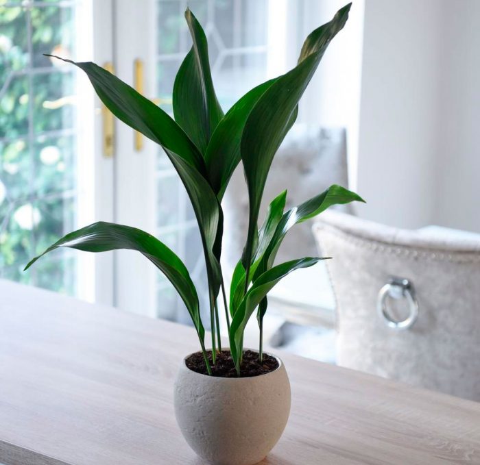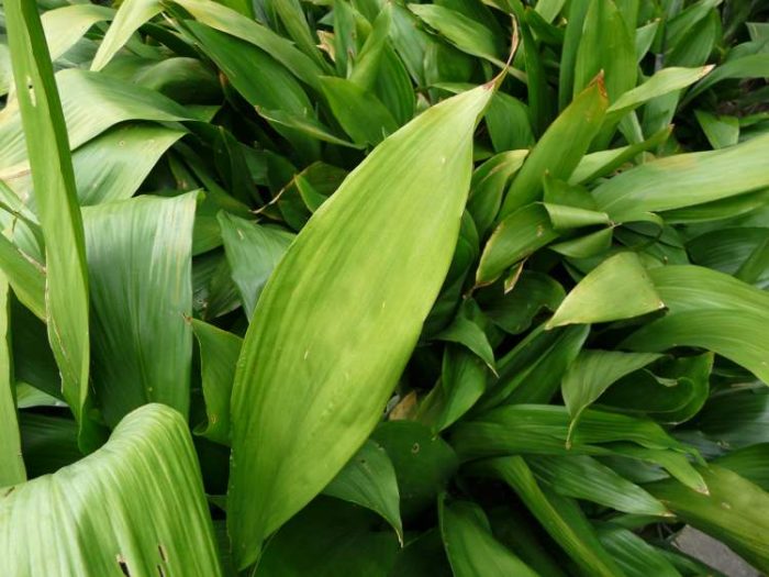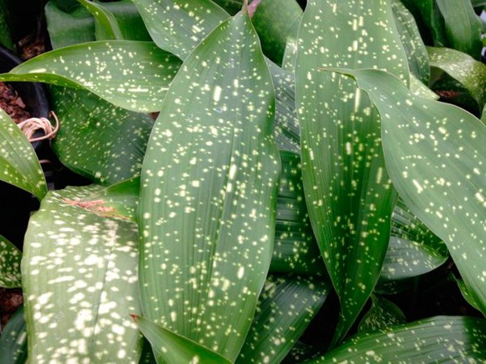Рослина аспідістра є многолетником, який родом із тропічних лісів Східної Азії. Цю рослину ще називають «покажчиком змій», така назва пов'язана з тим, що в ньому часто поселяються змії. Коли вони проползают крізь чагарник, то зачіпають листя. У зв'язку з цим на батьківщині аспідістри шелест листя є ознакою того, що отруйний хижак зовсім поруч. Ця рослина відрізняється від інших густий системою коріння, повною відсутністю стебел, а також яскраво-довгими зеленими листовими пластинами, які мають гладку поверхню. Також квітка відрізняється повільним ростом і дуже рідкісним цвітінням. Зацвісти кущ може лише в літній час і лише на одну добу. Ця рослина відрізняється витривалістю, вона добре росте і розвивається в місцях із забрудненою атмосферою. А ще вона добре переносить нестачу світла, а також невисоку температуру повітря в приміщенні.