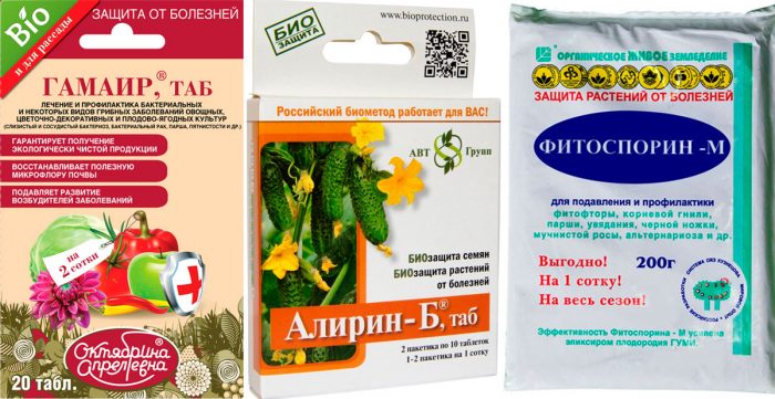 - Алирин-Б. Таке біологічний засіб пригнічує грибкові хвороби як в грунті, так і на рослинах. Його дія дуже схоже з Фитоспорином-М.