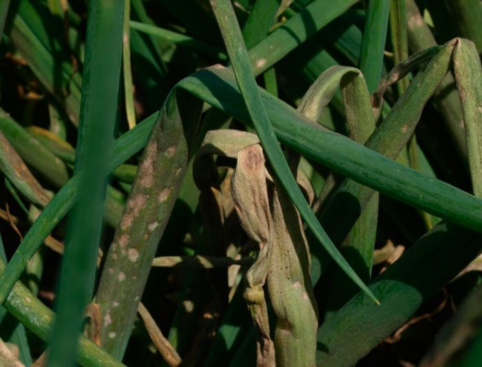 Як тільки на луці будуть виявлені перші симптоми хвороби, його одразу ж припиняють підгодовувати органікою і добривами, що містять азот. При цьому цибулю потрібно продовжувати підгодовувати калієм і фосфором. На деякий час призупинити полив грядки, це допоможе знизити рівень вологості.