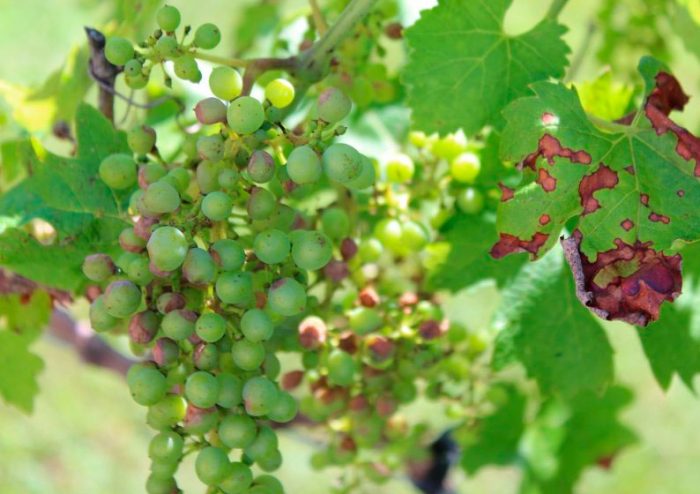 Виноград порівняно з описаними культурами менш схильний до ураження антракнозом, але він може дуже сильно постраждати від цієї хвороби. Сорти стійкі до мілдью та оїдіуму найбільш схильні до цього захворювання, так як їх не обприскують фунгіцидними препаратами. Найбільшою стійкістю до цієї хвороби відрізняються такі сорти винограду, як: Совіньон, Ркацителі, Трамінер і Рислінг.