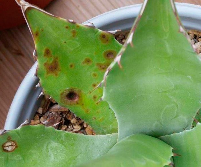 Кактуси уражаються антракнозом дуже рідко тоді, коли вони міститися при дуже високій вологості, яка сукулентних культур протипоказана. На рослинах утворюються вдавлені плями, при цьому вони іноді мають яскраве оздоблення. Захворювання дуже швидко поширюється по м'якоті кактуса, у зв'язку з цим зволікати не варто. Всі уражені ділянки потрібно акуратно вирізати заздалегідь простерилизованным інструментом, при цьому захоплюючи трохи здорової тканини. Далі проведіть обробку місць зрізів вугільним порошком. Для обробки кактусів фунгіцидні препарати не використовують, так як вони можуть погубити дана рослина. У цьому випадку рекомендується знизити рівень вологості повітря до мінімуму, і тоді розвиток грибка припиниться. При цьому сама рослина від надмірно сухого повітря не постраждає.