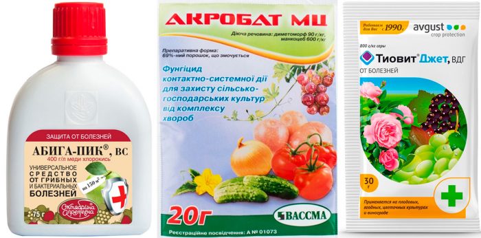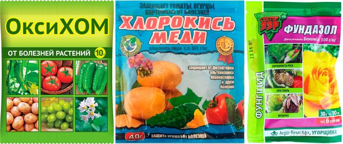 - Оксихом. Системне-контактна засіб широкого спектра дії, воно використовується при різних грибкових захворюваннях. Засіб дуже токсична.