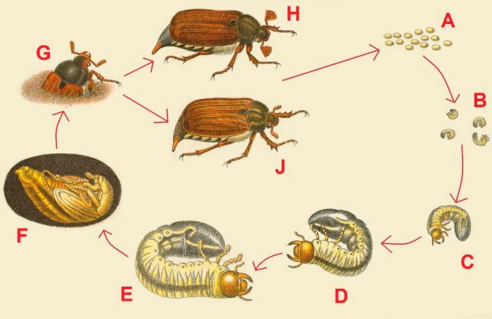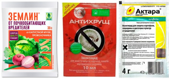 Для того щоб звільнити свій садову ділянку від личинок жука, потрібно використання спеціальних хімічних засобів. За відгуками садівників, найбільшою ефективністю відрізняються наступні засоби: