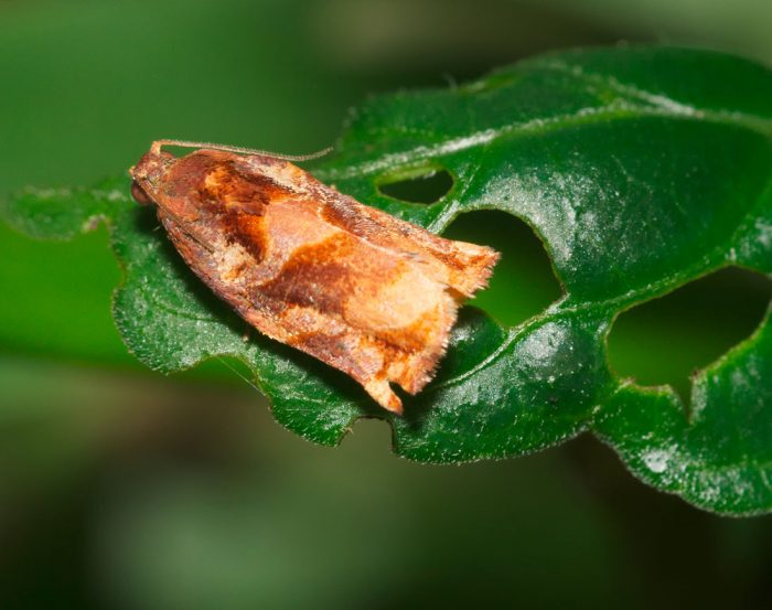 - Сливова листовійка (плодожерка). Передні крила у метелика бурувато-сірі з фіолетовим відтінком, їх прикрашає розмите дзеркальце, на якому є крапочки і штришками чорного забарвлення. Коричнево-сірі задні крила у підстави пофарбовані в більш блідий відтінок.