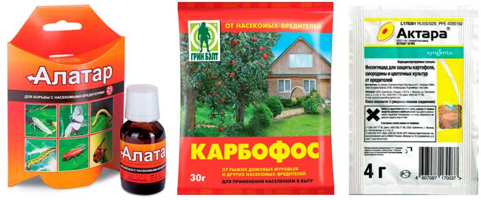 - Алатар. Це універсальне інсектицидний засіб. Для приготування робочого розчину, який використовується для обприскування садових чагарників і дерев, з'єднують одне відро води і 3-5 мг препарату.