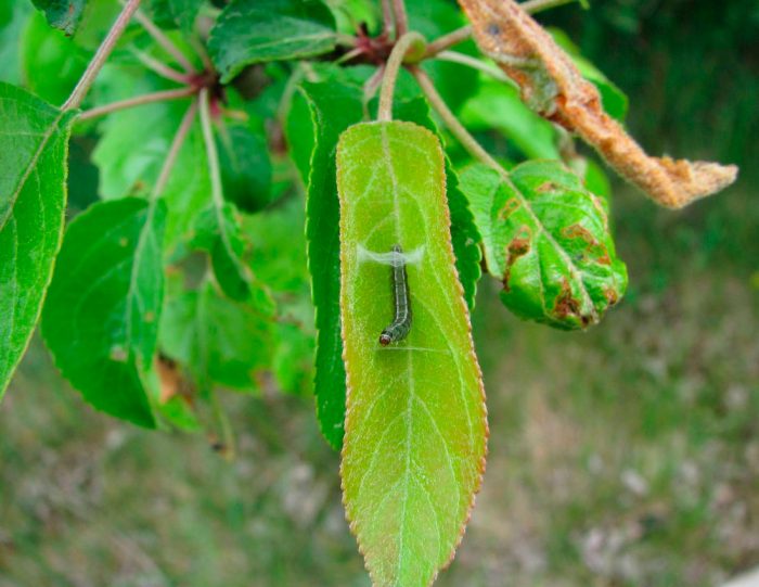 - обрізка згорнутої листя, в якій знаходяться гусениці;