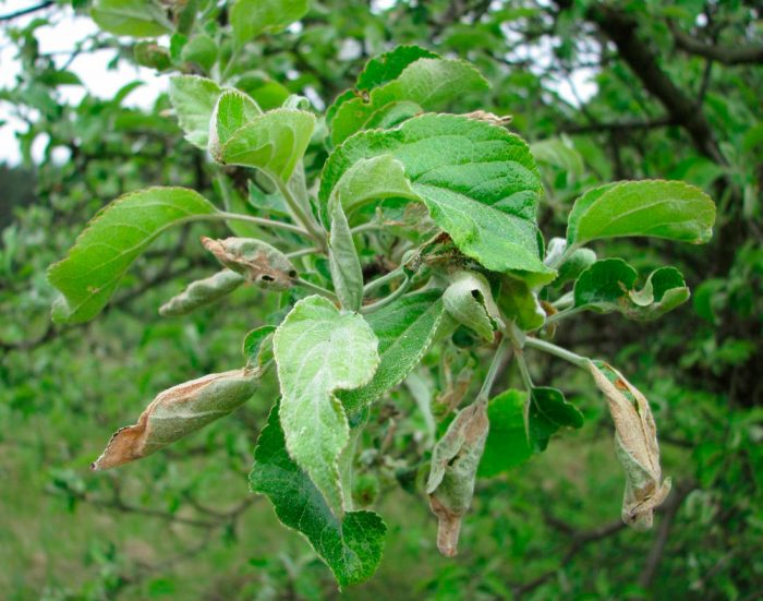 Коли плоди тільки почнуть набирати масу, обприскування яблуні отрутохімікатами потрібно зупинити. Після цього врятувати рослину від листовійок можна лише механічними і біологічними методами, наприклад, можна використовувати пастки і ловчі пояси. Своєчасно очищайте поверхню ґрунту під деревом від облетіло плодів і листя. Якщо є така необхідність, то обприскати рослину одним з народних засобів.