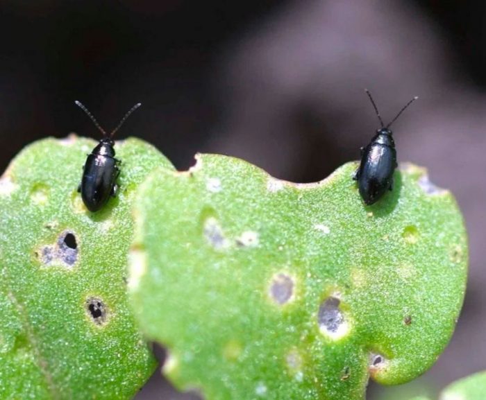 Жучки, які оселилися на редисці, на редьки або на інших представниках родини Хрестоцвіті, також їм можуть дуже сильно нашкодити. Справа в тому, що якщо листя буде травмована, то коренеплід втратить живлення. Боротьбу слід починати відразу після того, як тільки будуть виявлені перші шкідники. Для того щоб позбутися від них повністю, знадобиться провести кілька обприскувань.