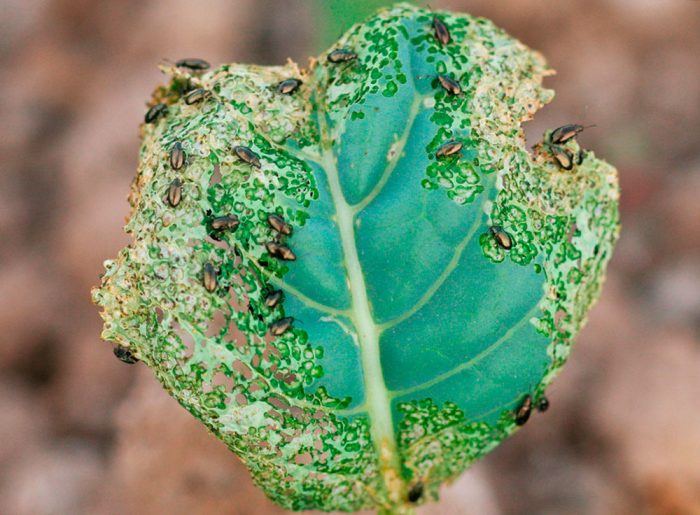 Може нашкодити хрестоцвіті блішки на ранній стадії розвитку капусти? Комахи травмують поверхню листя і втеч з-за чого з'являються виразки, які потім стають дірками. З-за цього починається пожовтіння листя. Травмовані сіянці можуть загинути всього протягом декількох днів, тим більше якщо погода стоїть дуже тепла. Як тільки жучки будуть виявлені, з ними потрібно відразу ж починати активну боротьбу.