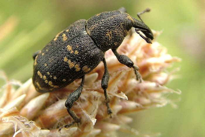 Жук довгоносик (Curcullionidae), ще іменований слоником, є представником дуже великого сімейства, в якому налічується більше 70 тисяч видів, при цьому більшість з них можна зустріти в тропіках. У середніх широтах зустрічається всього близько 5 тисяч видів. Довгоносики вважаються шкідниками різних рослин. Цікаво, що у кожного виду є свої переваги, наприклад, один з них пошкоджує городні культури, інший ― лісові рослини, третій ― садові і так далі. А ще є такий вид жука, який пошкоджує точку зростання пальми, з-за чого вона гине.