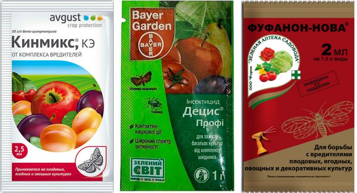 - Фуфанон, Іскра-М, Кемифос, Карбафос-500. Для приготування робочого розчину на 1 літр води береться 1 мг препарату.