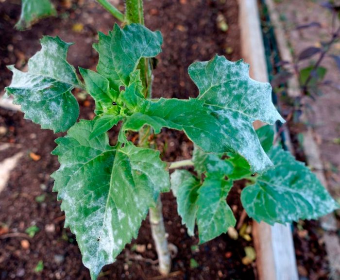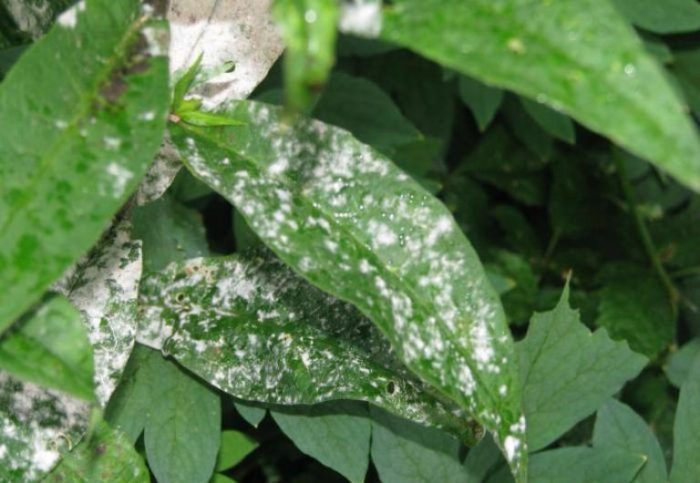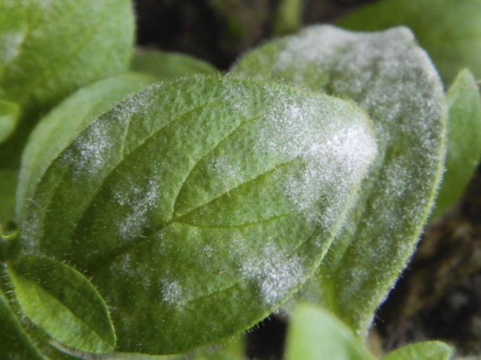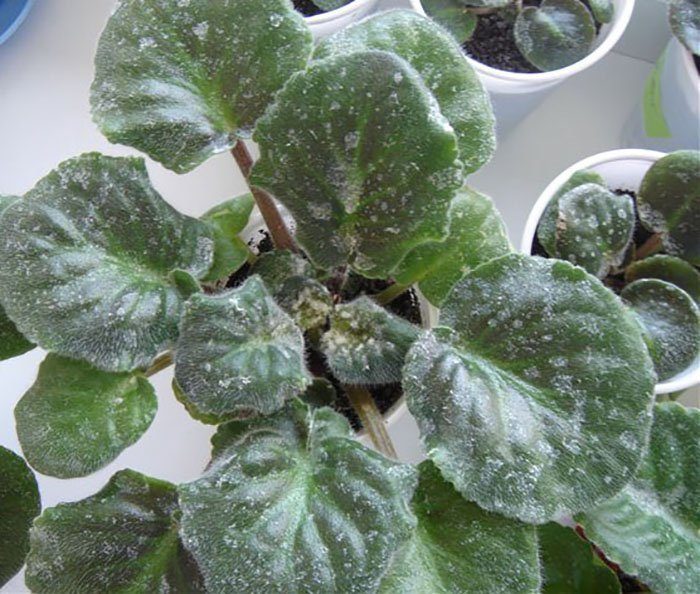 У фіалки садовій, яку ще іменують віолою, при захворюванні борошнистою росою страждає листя, бутончики і пагони. Найбільш частими причинами розвитку хвороби є: надмірно велику кількість азоту в ґрунті або ранкова рясна роса сухий погожий день. Хворі кущики стають менш ефектними, а ще вони цвітуть набагато менше покладеного терміну. У цьому випадку, щоб вилікувати квіти, використовують такі хімікати, як: Топсин-М, Фундазол, Морестан, Фталан, Купрозан, Цинеб, а ще кущики можна обприскати розчином кальцинованої соди, в який додають трохи мила.