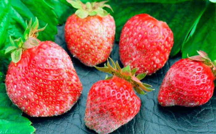 Якщо полуницю вразить борошниста роса, то зрозуміти це можна буде за беловатому нальоту, який утворюється на виворітній поверхні листових пластин, з-за цього вони з часом стають шкірястим на дотик, при цьому краї у них закручуються і забарвлюються в бронзовий колір. Найбільша концентрація борошнистого нальоту спостерігається на вусах, а також центральних листових пластинках. На сформованих на хворому кущику плодах так само утворюється білий наліт, а ще у них з'являється пліснявий запах. У профілактичних цілях не допускайте загущення посадок, для цього полуницю потрібно регулярно проріджувати і пересаджувати. Для обробки хворих рослин використовують суспензію колоїдної сірки (1%) або ТМТД, а ще такі засоби, як Байлетон, Світч, Квадріс або Фундазол, при цьому обприскування проводять після того, як кущики відцвітуть, а також після збирання врожаю. Під час обприскування постарайтеся, щоб препарат змочив обидві поверхні листових пластин.