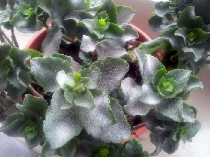 Ураження борошнистою росою піддаються також і деякі домашні квіти, наприклад: бегонія, циссус, сенполія, ірис, троянда і каланхое. Як правило, захворювання починає розвиватися з-за сперте повітря при високій його вологості, різких коливань температур вдень і вночі і сухий ґрунтосуміші. Збудники такої хвороби можуть переноситися з ураженого куща на здоровий повітряним потоком, шкідниками або під час зіткнення один з одним (ємності з квітами стоять дуже близько). Зрозуміти, що квітка захворіла, можна по утворився білястим цятками, які можна виявити на обох поверхнях листових пластин, а також на бутонах. Відразу ж після виявлення подібних симптомів, треба починати боротьбу з захворюванням. Якщо ж лікування почате занадто пізно, тоді квітка може втратити декоративність, а ще на ньому з'явиться гниль. На самому початку розвитку хвороби кущі можна обробити часниковим настоєм або розчином перманганату калію або кальцинованої соди. Якщо ж рослина захворіло дуже сильно, тоді тут не обійтися без хімікатів, у цьому випадку використовують Скор, Хом, Вектра, Байлетон, Фундазол, Витарос, Топаз або Тіовіт Джет. Перш ніж приготувати розчин, треба уважно вивчити прикладену до препарату інструкцію.