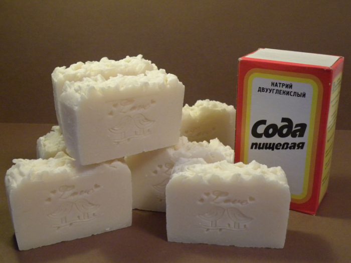 - Розчин соди й мила. Для його приготування треба в одному відрі води розчинити 20 грам рідкого або подрібненого на тертці господарського мила, а також 50 грам харчовій або кальцинованої соди. Обприскати рослину слід не менше двох разів з інтервалом в 7 діб.