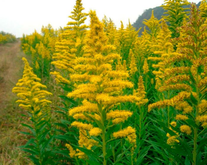 - Фрюгольд. Висота рослини до 1,2 м, а довжина суцвіть жовтого забарвлення близько 0,25 м.