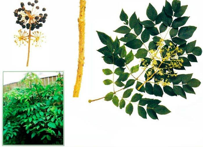 Засоби, виготовлені на основі аралії, використовуються при цукровому діабеті, послегриппозной астенії, статевому безсиллі, а ще фізичній і розумовій перевтомі. Ці препарати надають збудливу дію на ЦНС, при цьому вони більш ефективні, ніж кошти з женьшеню. У нетрадиційній медицині така рослина використовується з давніх пір, його застосовують для лікування хвороб шкіри, які пов'язані з обмінними процесами, захворювань нирок, шизофренії, гіпотензії, атеросклерозу та цукрового діабету. При цьому слід враховувати, що засоби, виготовлені на основі аралії, відрізняються кардіологічним дією, але вони не чинять сильного впливу на артеріальний тиск. В лікарських цілях використовують настоянку аралії, що виготовляється з корінців, і таблетки Спарал, що відрізняються тонізуючим ефектом. А ще готують відвар з коренів, який використовується для лікування цукрового діабету, енурезу, застуди, запалень рота і шлунково-кишкових хвороб.