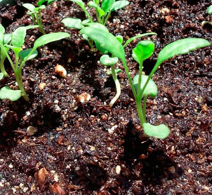 Перші сіянці повинні здатися через 15 днів. Щоб виростити розсаду, її потрібно систематично поливати і підгодовувати. Висадку рослинок у відкритий ґрунт проводять після того, як у них сформується 5 або 6 справжніх листових пластин. Однак за півмісяця до пересадки у відкритий грунт їх слід загартувати, для цього розсаду кожен день переносять на вулицю. Спочатку вона повинна перебувати на свіжому повітрі близько 30 хвилин, тривалість такої процедури треба збільшувати поступово до тих пір, поки рослинки не зможуть прибувати на вулиці цілодобово.
