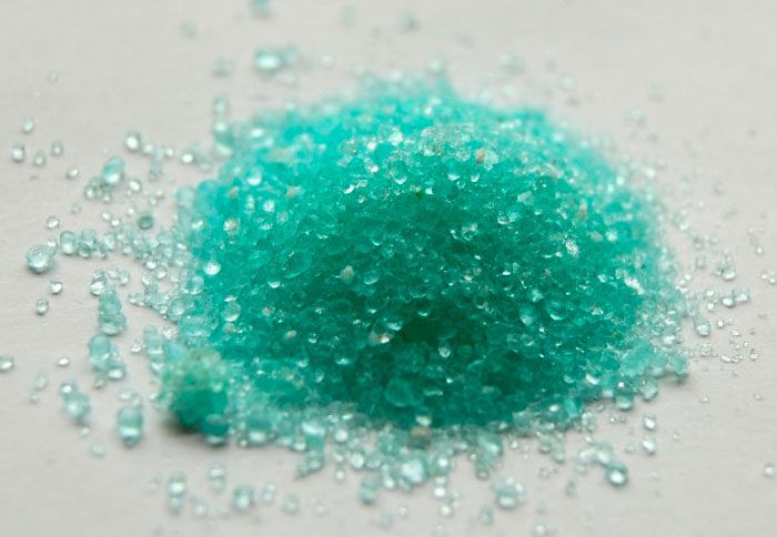 Залізний купорос має ще одне хімічна назва — сульфат заліза. Він користується досить великою популярністю у садівників і використовується в садівництві вже багато років. Зовні цей засіб виглядає, як кристалічний порошок, пофарбована в блідо-зелений колір. При цьому концентрація головного діючого компонента знаходиться в межах 53 відсотків.
