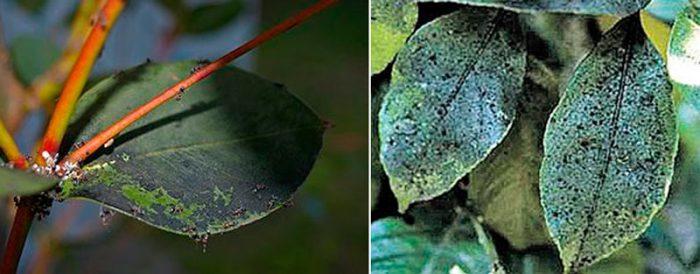 Чорний вид грибка може з'явитися в місцях, де тля, білокрилка або борошнистий червець залишають після себе солодкуваті виділення.