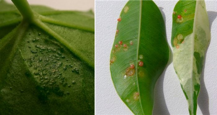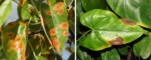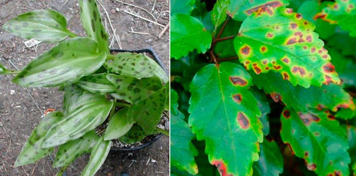 Такі поразки характеризуються появою плям на листках, причому не великих розмірів. Якщо не приймаються ніякі заходи, то ці плями розростаються, і листя починає відмирати.